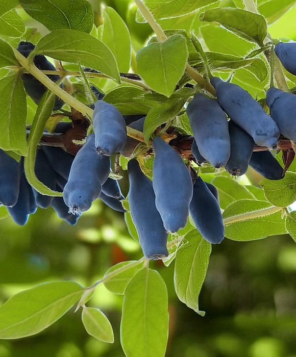 Жимолость «Югана» – это высокоурожайный и раннеспелый сорт с крупными, кисло-сладкими ягодами темно-фиолетового цвета с сильным восковым налетом. Куст достигает высоты 1,5-2 м и отличается хорошей устойчивостью к морозам и болезням. Ягоды легко снимаются с веток, обладают десертным вкусом и хорошо подходят для употребления в свежем виде и для заготовок, так как хорошо переносят транспортировку и заморозку