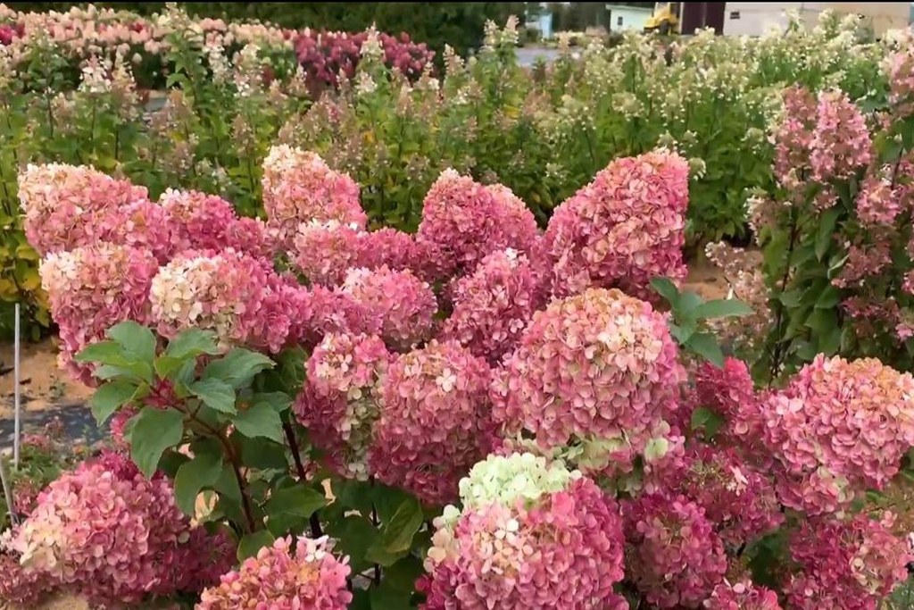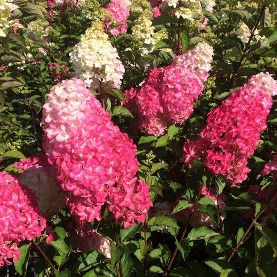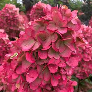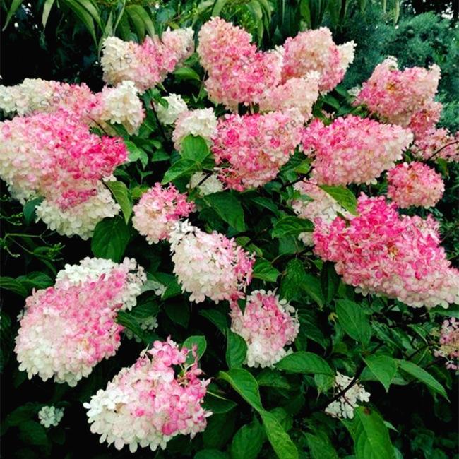 Особенности сорта Название: Происходит от французского десерта «клубника со сливками» из-за контрастной окраски соцветий. Соцветия: Крупные, пирамидальные, длиной 30-55 см. Цвет меняется в течение сезона: от кремово-белого к розовому и затем насыщенно-красному. Побеги: Прямостоячие, сильные, коричнево-бордового цвета, не требуют подвязки. Листья: Темно-зеленые, с яркими кораллово-красными черешками. Цветение: Обильное, с июля до октября. Морозостойкость: Высокая, до -29°C. Уход и выращивание Освещение: Лучше всего растет на солнечных или полутенистых участках. Почва: Влажная, плодородная, слабокислая или кислая. Избегайте извести. Полив: Регулярный, особенно в засушливое лето, но без переувлажнения. Обрезка: Ежегодная ранневесенняя обрезка необходима для получения крупных соцветий. Зимовка: В суровые зимы молодые растения нуждаются в укрытии. Мульчирование приствольного круга сухими листьями или хвойным лапником помогает защитить корни.