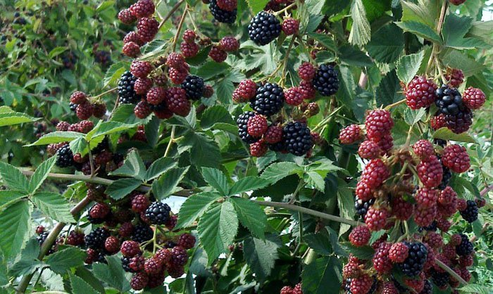 Ежевика Торнфри — популярный бесшипный, полустелющийся сорт с высокой урожайностью, выведенный в США, характеризующийся мощными побегами до 4-6 м, крупными (5-10 г) глянцевыми черными ягодами, собранными в большие кисти, кисло-сладким вкусом и поздним сроком созревания (август-сентябрь). Сорт неприхотлив, устойчив к болезням, но требует обязательного укрытия на зиму и подвязки к шпалере.