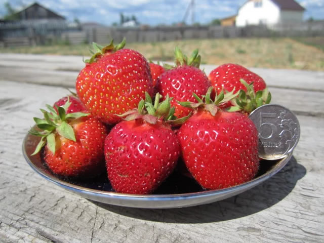 Это очень неприхотливый сорт с красивыми, необычайно вкусными, очень сладкими и ароматными ягодами! Плоды крупного и среднего размера (от 23г до 30г), отдельные экземпляры могут достигать 35г. На протяжении всего периода плодоношения ягоды не мельчают. Они имеют коническую форму. Кожица блестящая, мякоть сладкая, сочная, ароматная. Отчётливо чувствуются земляничные нотки. Вкус не ухудшается даже в дождливую погоду. Ягоды красивые по форме и цвету. Урожайность достаточно хорошая, не менее 700г с куста, может достигать до 1000г. Кустики просто усыпаны ягодами. Транспортабельность отличная. Устойчивость к некоторым заболеваниям хорошая. Этот сорт нам очень понравился. Советуем !!!