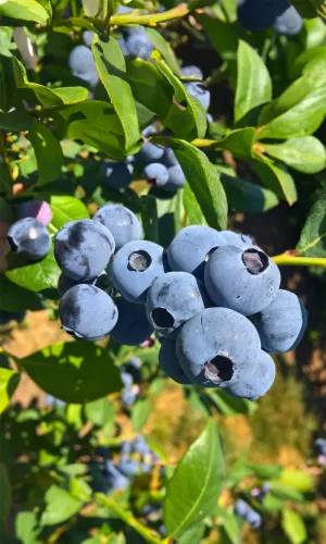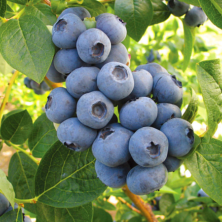 Голубика «Дюк» — популярный ранний сорт, ценимый за высокую урожайность, морозостойкость (до -34°C), неприхотливость и крупные, вкусные ягоды, которые созревают в середине лета. Кусты высокорослые, прямостоячие, до 1.8 м, с хорошей транспортабельностью ягод. Вкус сладкий с терпкостью, ягоды плотные, синие, с серебристым налетом.