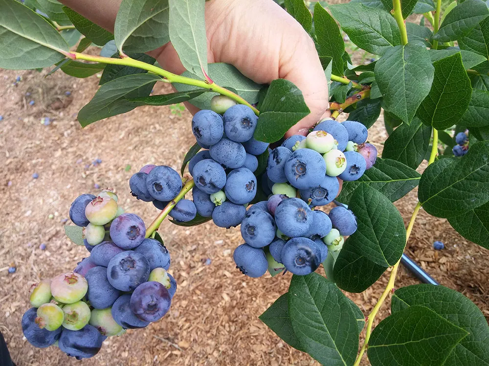 Блюкроп — это популярный среднеранний сорт голубики с высокими кустами (до 2 м), обильным плодоношением (4-9 кг с куста) и крупными, светло-голубыми ягодами сладкого вкуса. Он ценится за высокую морозоустойчивость (до -34 °C) и хорошую транспортабельность ягод. Сбор урожая начинается в конце июля и продолжается до августа.